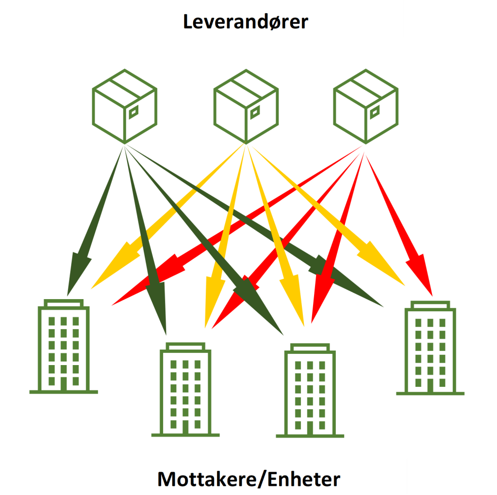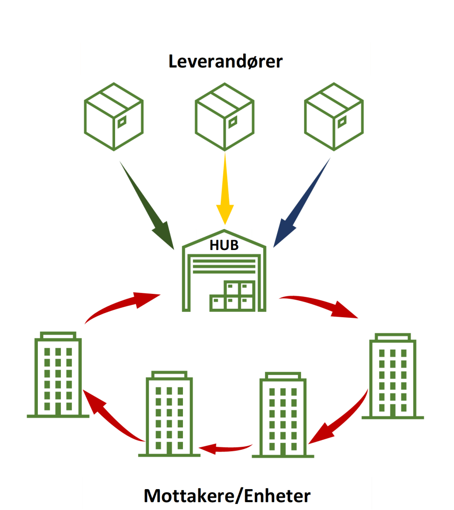 I en kommune foregår daglig transport av kontorrekvisita, matvarer, medisinsk forbruksmateriell, renholdsprodukter og undervisningsmateriell med mer, direkte fra vareleverandører (avsendere) til kommunens enheter (mottakere). Kommunens anskaffelser fra rammeavtaleleverandører skjer med forretnings-modellen fri levering hvor transporten inngår som et skjult påslag i varens pris. For engangskjøp av ulik størrelse betaler ofte kommunen frakt hvor leverandøren bestemmer transporten. Alternativt gjøres kjøp direkte i butikken, hvor ansatte står for transport i bil, på sykkel eller til fots.